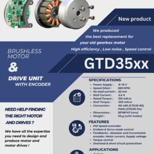 موتور براشلس GTD35XX جایگزین موتورگیربکس ها و سرووموتورهای قدیمی بدون استهلاک و تولید حرارت با گشتاور فوق العاده وکاملا بی صدا با دقت بسیار بالا