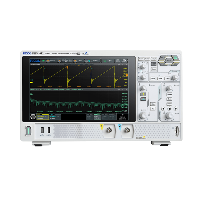 اسیلوسکوپ دیجیتال 2 کانال RIGOL DHO1072 با پهنای باند 70 مگاهرتز،نرخ نمونه برداری 2 گیگاسمپل بر ثانیه و نمایشگر 7 اینچ لمسی