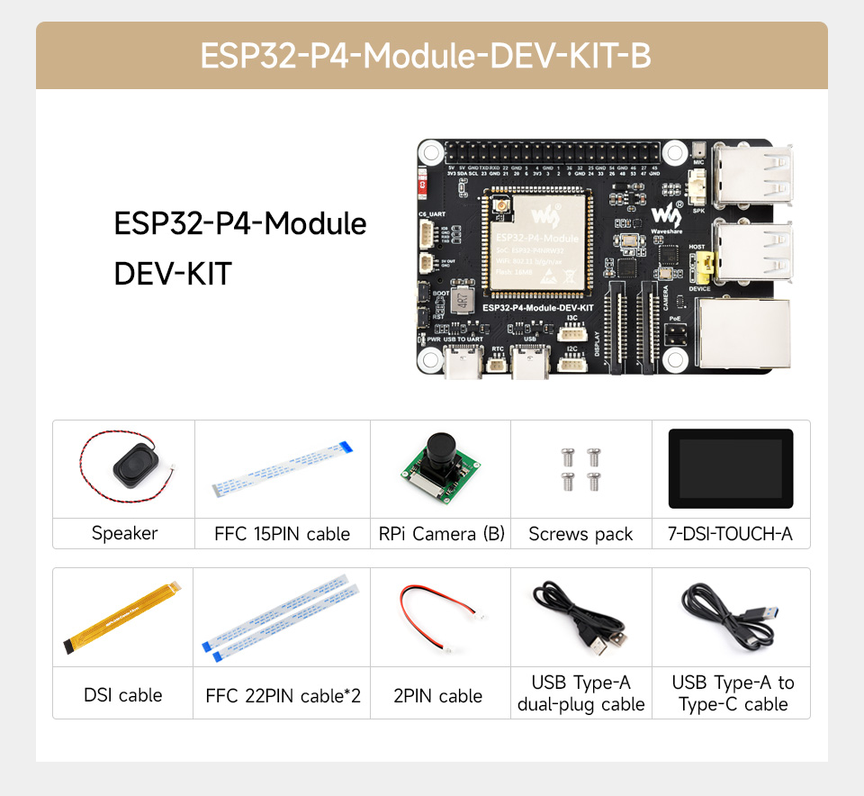 ESP32-P4-Dev-Kit-B محصول Waveshare یک کیت توسعه قدرتمند مبتنی بر ماژول ESP32-P4 است که با پشتیبانی از Wi-Fi 6، بلوتوث 5، نمایشگر لمسی DSI، دوربین CSI، پورت Ethernet و USB گزینهای ایدهآل برای پروژههای HMI، IoT و پردازش صوت و تصویر محسوب میشود. این نسخه همراه با نمایشگر ۷ اینچی، دوربین و اسپیکر عرضه میگردد